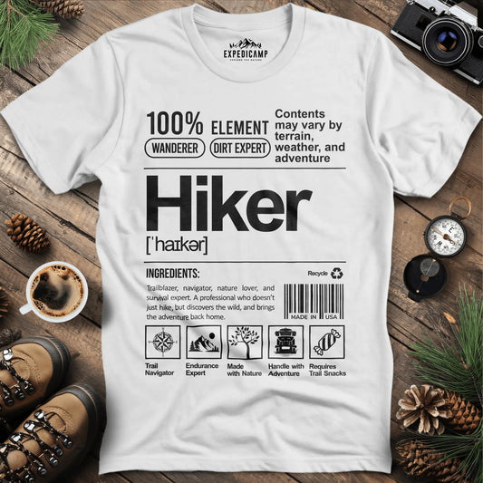 Hiker Label T-Shirt – Funny Hiking Ingredient Label Tee
