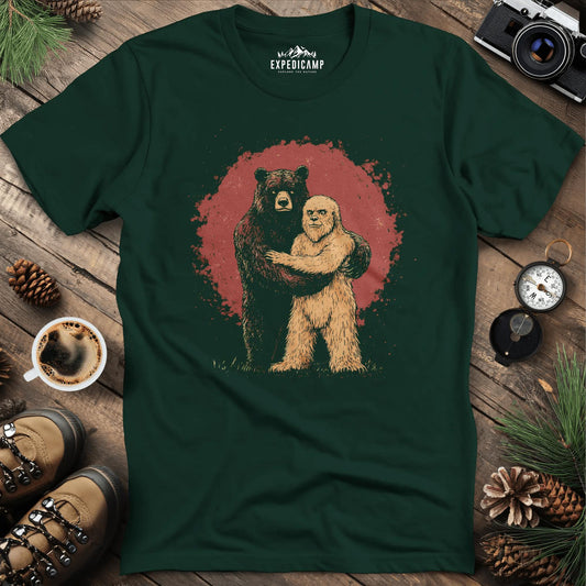 Bear Hugging Bigfoot T-Shirt – Unlikely Wilderness Friendship