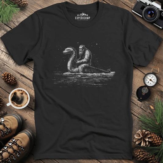 Bigfoot Riding Loch Ness Monster T-Shirt