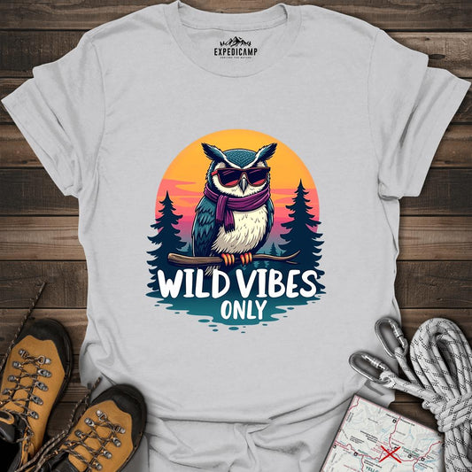 Wild Vibes Only Owl T-Shirt – Fun Adventure & Camping